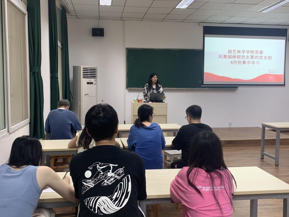 6月23日,风景园林研究生第四党支部在景园楼309以“支书讲党课”的形式组织开展了六月主题党日活动,党支部书记王上同志主持学习,支部全体党员及积极分子参与学习。