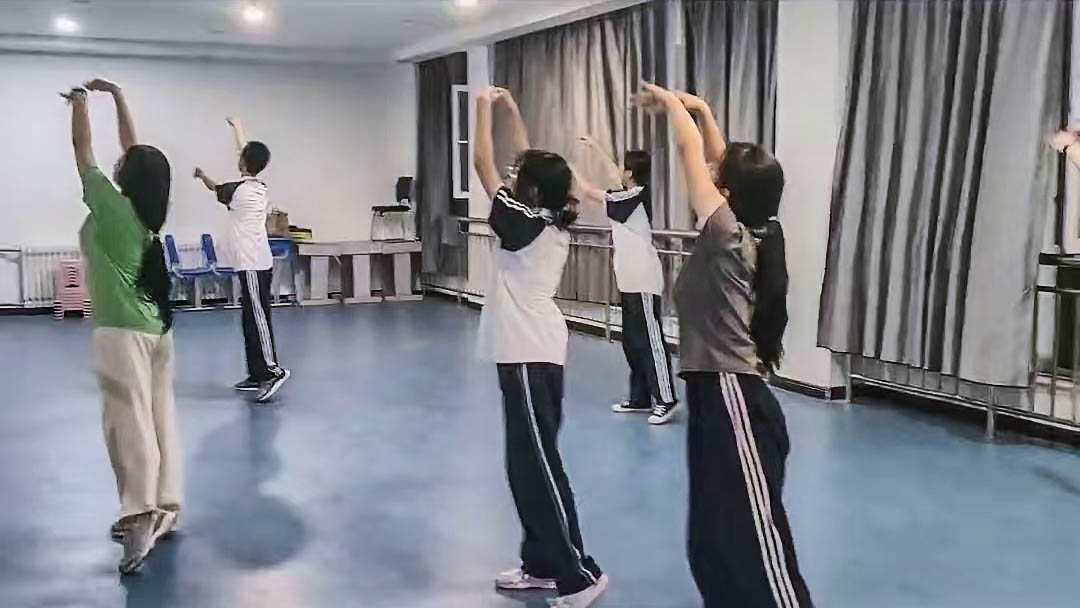 担任舞蹈老师的詹琪带领同学们排练舞蹈《红日升在东方》,希望在中华民族这片广袤的土地上,各民族团结一心,共同奋斗,就如同初升的红日一般,共同照亮大地,共同照亮中华民族的未来之路。