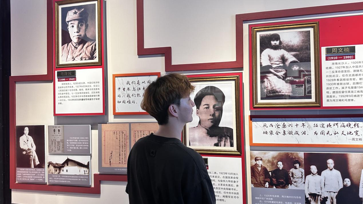 同日,实践团参观了旧居内的红色教育展览馆。展览馆内的历史文物,见证了毛泽东等老一辈革命家在此地留下的足迹,他们坚定的革命信念、无私的奉献精神,深深地震撼着实践团成员们。其次,展览馆还通过多媒体等现代科技手段,再现了革命历史场景。此外,在参观过程中,实践团成员注意到了那些反映革命斗争艰苦岁月的展品,它们不仅仅是物质的遗存,更是精神的传承。这种身临其境的体验,让实践团成员对革命历史有了更加直观和深刻的认识。