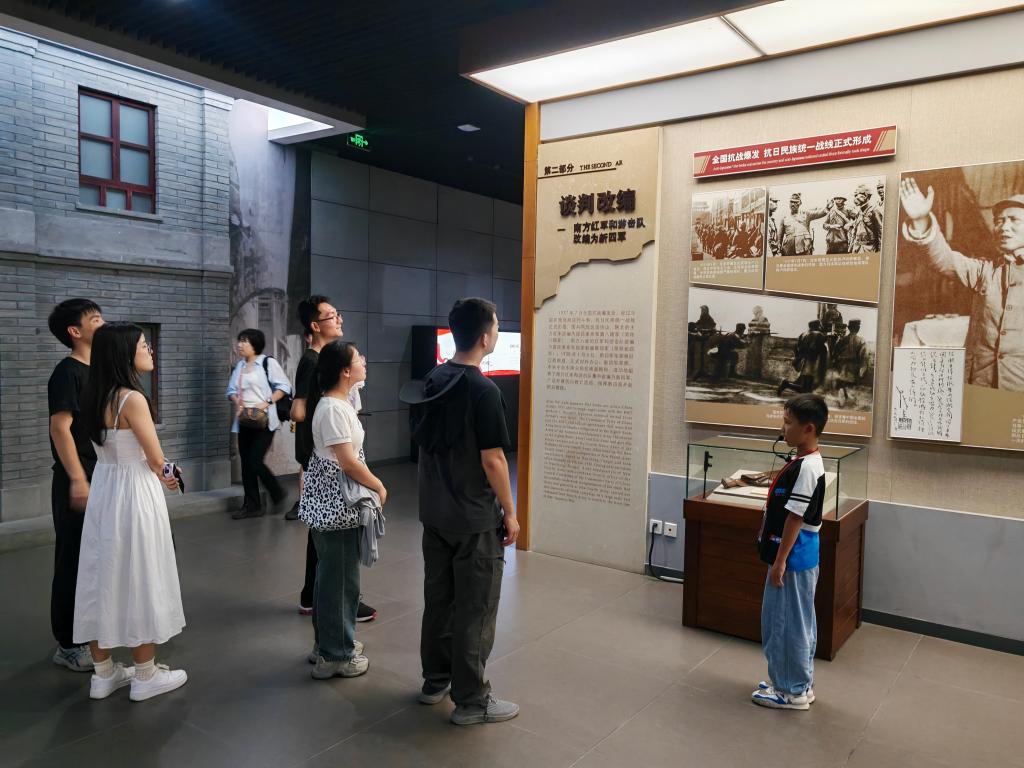 队员们认真聆听讲解员详细讲解新四军抗日历程