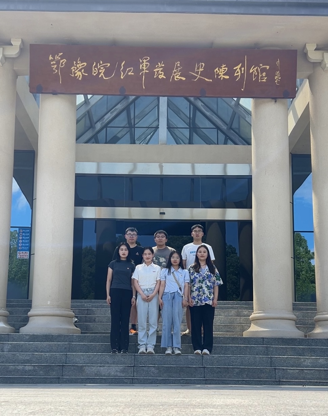 团队成员在鄂豫皖红军发展史陈列馆前合影(通讯员 张帆 摄)
