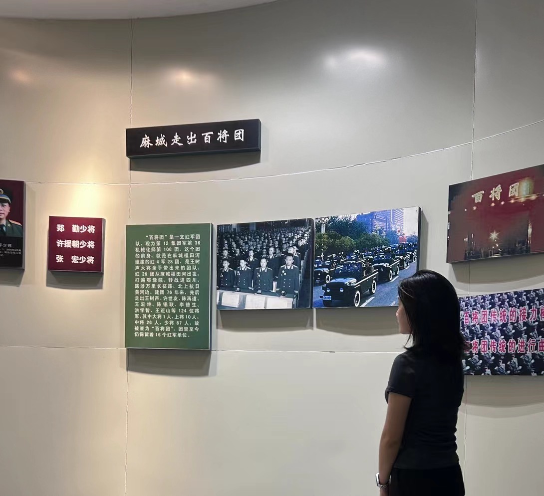 团队重点参观了麻城革命纪念馆与王树声纪念馆。革命纪念馆中收录了76位烈士、44位麻城籍将军(新时期8位)、86位英模等代表人物的资料。序厅展陈的是以大别山群峰为背景的从麻城走出的共和国将军群体塑像。其次分为红色土地、英烈忠魂、群星璀璨、将军风采、崛起的麻城五个部分。在1955年授衔的将军中,麻城乘马岗这个在全国地图标记上找不到的小小山乡,将军数量之多级别之高居然在全国名列第一。在随后王树声纪念馆,了解到了这个将军一生的经历,其中既有郁郁葱葱的“系马桩”,也有他亲手组织的“岗庙起身”,还有在太行山等地的战役。1973年,王树声将军掩护部队,坚持游击,孤身一人穿越腾格里沙漠,在群众的帮助下回到固北县,毛主席亲自打电话慰问说:“你回来就是胜利!”
