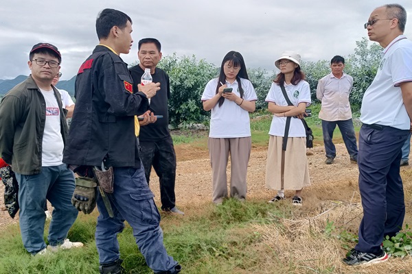 图为广西益才陆经理向团队介绍田间情况(通讯员 孙志龙 摄)
