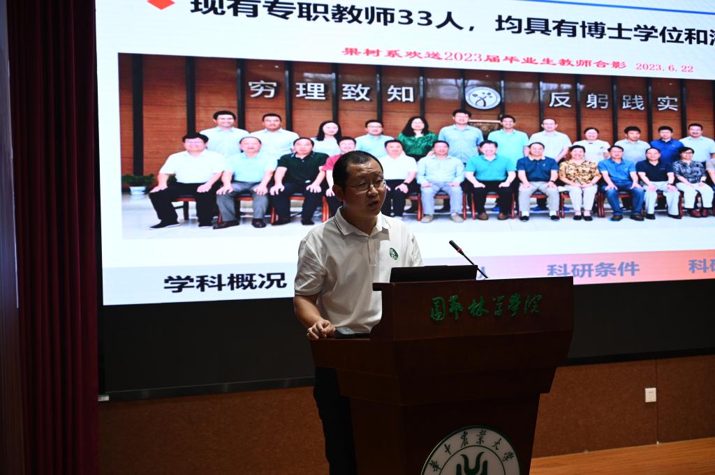 系主任刘军伟副教授从学科发展概况、现有研究条件、科研环境、人才培养计划和社会服务多个方面向各位新生介绍了果树学科的主要情况,为新生们描绘了一幅果树学领域的宏伟蓝图,鼓励新生们要珍惜在公司的学习机会,积极投身于果树学的研究与实践,为果树学的发展贡献自己的力量。