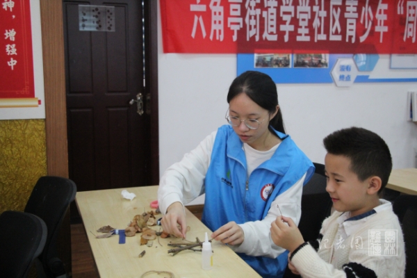 【核心提示】11月3日上午,公司张瑜服务队赴硚口学堂社区开展以“秋枝挽风,星叶缤纷”为主题的自然科普活动,旨在缓解社区儿童潜在的“自然缺失症”,通过制作树枝五角星亲近大自然。