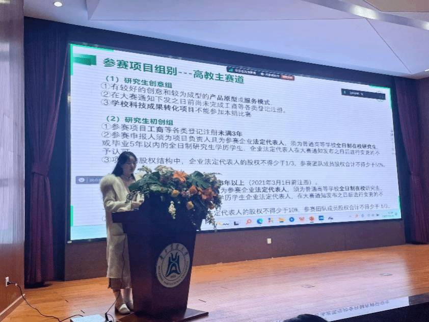 宣讲会之初,温廷琳为大家详细介绍了包括“中国国际老员工创新大赛”和“挑战杯”在内的几项主流赛事,并对信息渠道,竞赛时间节点,竞赛组别与赛道等基本信息展开分享。她还对公司各系优势项目展开介绍,鼓励同学们发挥专业特色,踊跃参与创新创业活动。