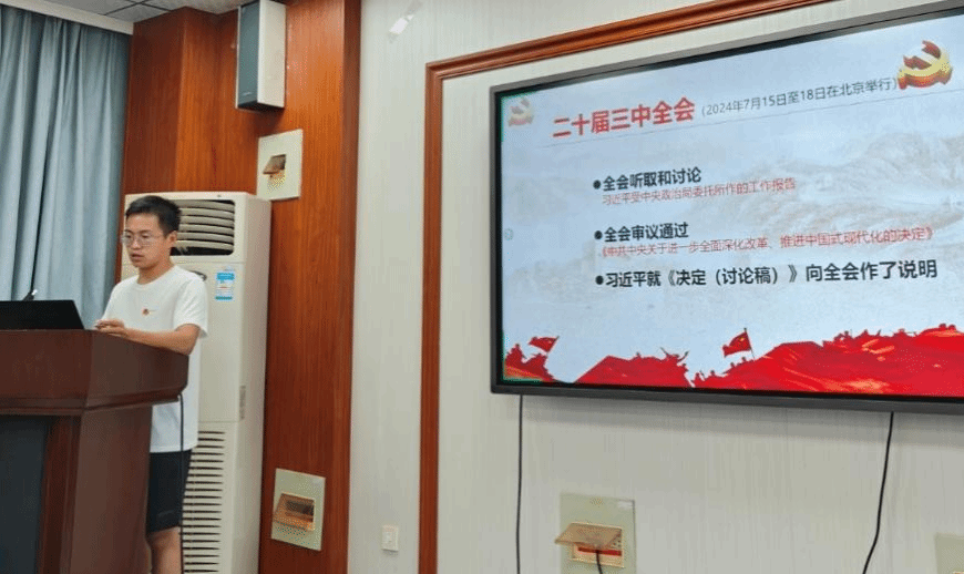 会议伊始,支部书记王进同志带领全体党员学习了党的二十届三中全会精神,他讲到要深入学习贯彻习近平总书记关于全面深化改革的重要论述,为落实推进中国式现代化的强大动力。