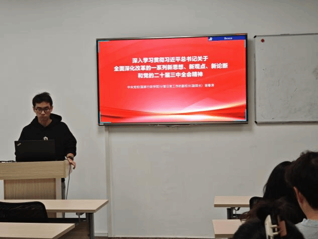 随后我们视频学习了贯彻习近平总书记关于全面深化改革的一系列新思想、新观点、新论断及党的二十届三中全会精神。通过视频学习,支部的全体党员对习近平总书记关于全面深化改革的一系列新思想、新观点、新论断有了更深刻的理解。我们计划将学习成果转化为具体行动,确保党的二十届三中全会精神在本支部得到全面贯彻落实。我们将:加强理论学习:定期组织学习会议,深入学习习近平总书记的重要讲话精神和中央文件精神,如《中共中央关于进一步全面深化改革、推进中国式现代化的决定》。结合本支部实际情况,制定具体措施。例如,通过开展主题党日活动进行实践学习,如参观红色教育基地传承革命精神,增强党员的责任感和使命感。