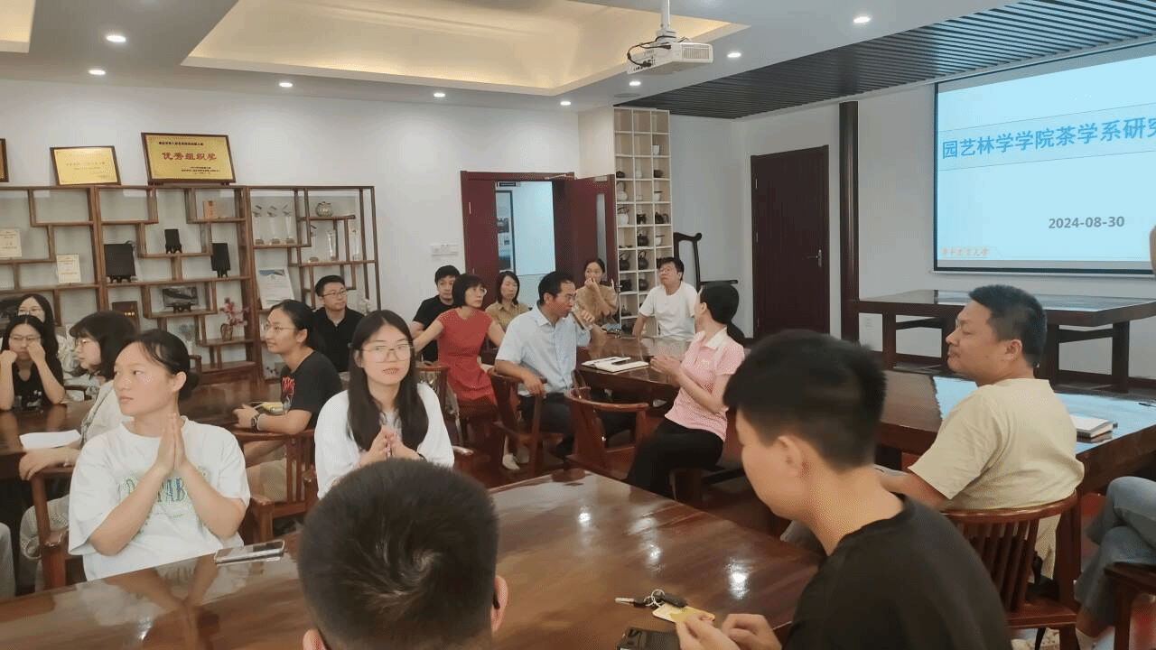 8月30日,“茶韵茗香”——2024级茶学系学科前沿交流暨研究生新生师生见面会于北楼耕读茶室举行,会议由郭飞老师主持。