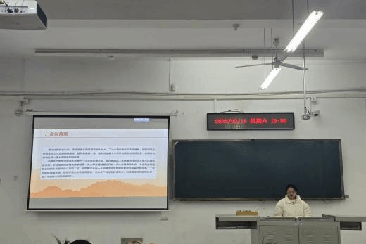 蔬菜专硕1班的班会由团支书昃雨娴主持。她带领同学们认真学习公司第十一次党代会报告,并号召同学们以实际行动践行党代会精神,共同营造安全、和谐、稳定的校园环境。