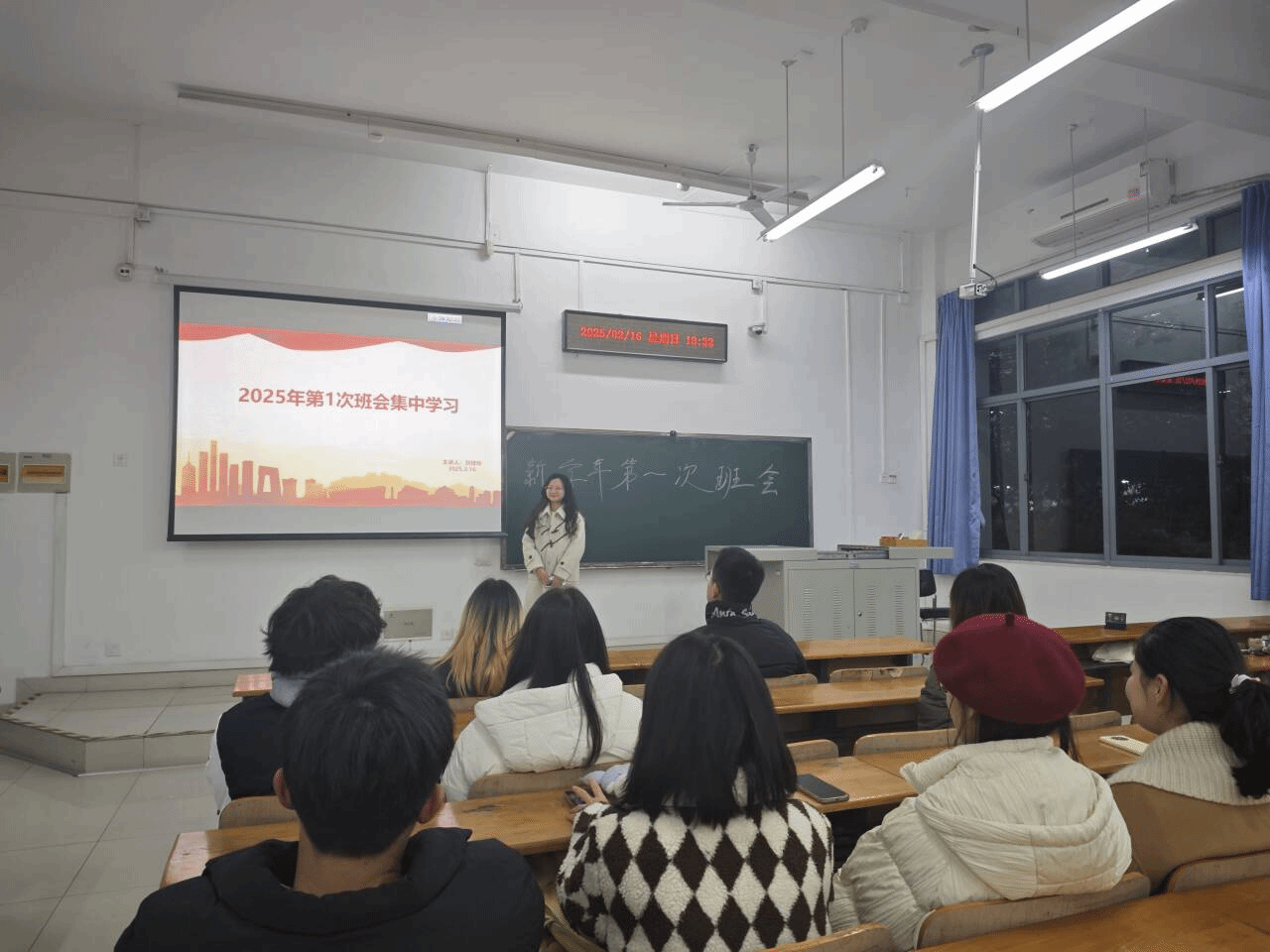 风景园林专硕1班在班长滕仪的带领下,深入学习公司第十一次党代会报告,号召同学们将个人成长融入公司“双一流”建设,以青春行动践行使命担当。孟悦、董晓玲两位辅导员老师结合公司发展规划与班级实际,为同学们新学期的学习生活指明方向。她们鼓励同学们树立清晰目标,注重时间管理,同时关注身心健康,以积极饱满的状态迎接挑战。辅导员还通过反面案例分享,提醒同学们注意交通安全和财产安全。