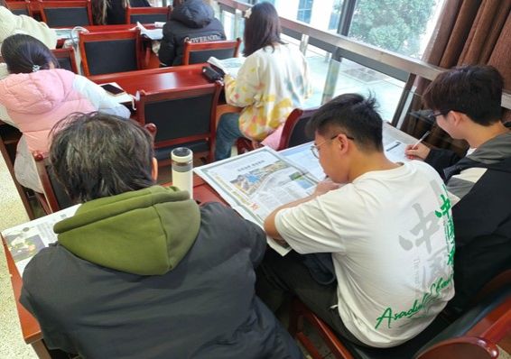紧跟时代浪潮,助力创新发展。集体观看视频后,入党积极分子们自由阅读报纸,了解时事热点,学习最新的党的动态,从多方面、各角度理解党在新时代下的政策理念。同时,主持人刘睿同学也建议同学们在阅读的同时积极整理学习感悟,关注最新的政治动态,做到“学有所得,习有所获”。
