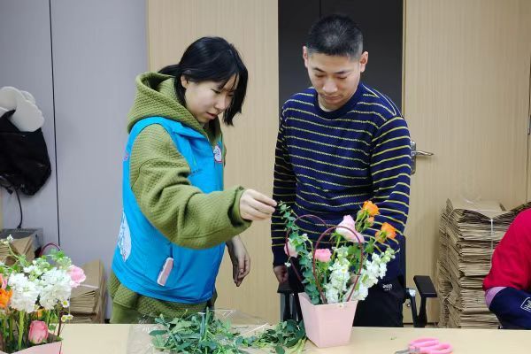 为提升阳光家园的残障人士园艺植物养护专业化水平,推动传统文化与劳动技能深度融合,3月20日春分日,张瑜服务队举办“春分闻花信,指尖生芳华”主题活动,通过节气文化科普、花艺创作实训双模块教学,让阳光家园的大朋友在感知物候智慧中掌握科学养护技能。
