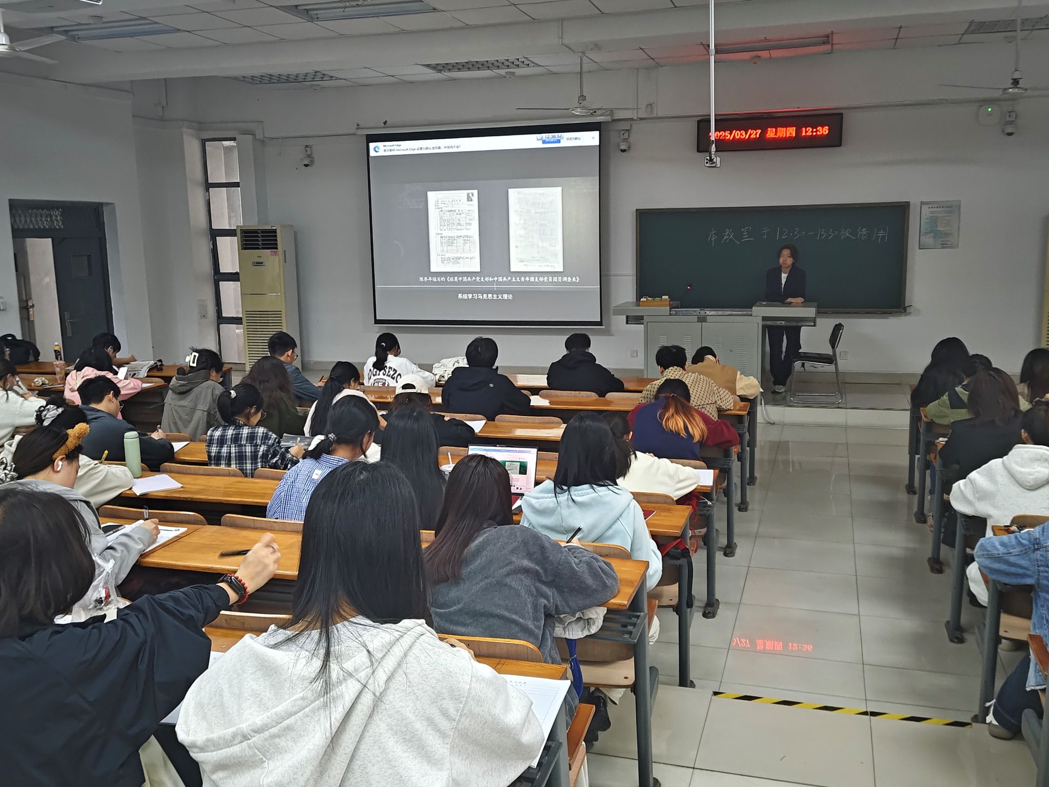 2025年3月27日,伟德bv1946官网组织入党积极分子于三教C105教室开展了“周四理论学习日”活动。本次活动包括了观看视频,阅读报纸,有奖竞答三个环节。本次理论学习有利于入党积极分子们及时了解党的方针政策、培养政治觉悟、增强信仰力量,提高对党的归属感与使命感。