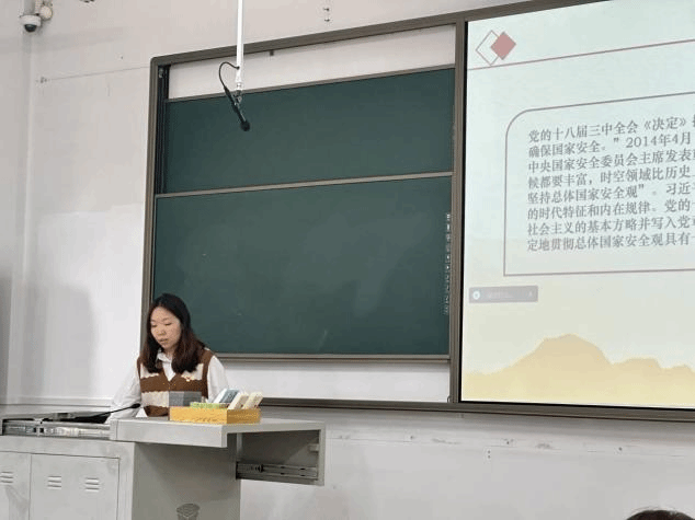 随后,程佳蕊同志讲解了“学习习近平总书记关于总体国家安全观的重要论述”。她指出,此论述深刻揭示了国家安全的本质和内涵、国家安全的时代特征和内在规律。十年来,在总体国家安全观的科学指引下,安全发展贯穿国家发展各领域和全过程,中国特色国家安全道路越走越宽广。总体国家安全观闪耀着真理的光芒,彰显出实践的磅礴伟力。