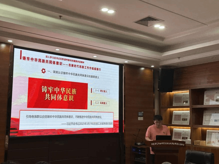 会议伊始,支部书记姚鸿林同志带领参会人员学习了习近平总书记在黔滇考察的重要讲话精神,以及中央八项规定精神的具体内容。他着重强调了深刻铸牢中华民族共同体意识的重要性,他谈到,每一位党员同志都应当承担起铸牢这一意识的责任,努力与各民族保持和谐共处,促进民族团结进步。