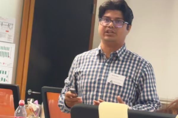 农业生态系统工程小组的博士Munnaf Abdul对于可持续农业方面的生物降解的传感技术进行了讲解。他向同学展示了一种基于天然材料(如木材、天然菌落等)构建的绿色传感器系统,同时指出该系统能够长期部署于土壤中,并在完成任务后自然降解,无需人工回收。这种技术支持构建密集型传感网络,提升农田异质性信息的空间分辨率,从而实现对水分、养分等农艺因子的精准管理。此外,教授还介绍了多传感器集成系统与数据融合算法,如Kalman滤波器等,这些算法在农业建模和实时监测中的关键作用。
