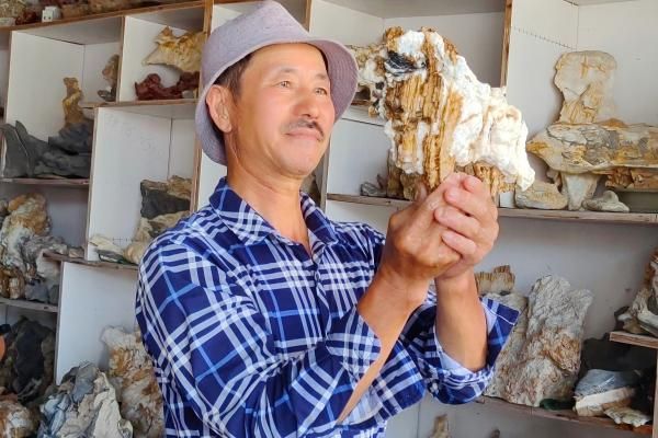 更令人动容的是在李老师引荐下遇见的古稀前辈。老人颤巍巍地捧出珍藏的“雪浪石”,沟壑纵横的石面在光影下竟浮现云海翻涌的幻象。“年轻人看这块像不像黄山云峰?”他将石头转向队员,眼中跳动着孩童般的得意与无法掩饰的珍视。他动情地阐释着每一块宣石作为不可复制孤品的价值,反复强调对传统赏石文化与工艺的尊重,认为这是守护宣石文化灵魂的根本。