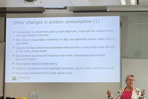 随后,瓦赫宁根经济研究所博士Gemma Tacken聚焦“动物源食品消费行为”展开分享。她以乳制品、肉类等品类为例,揭示消费选择受文化、价格、营养等多元因素影响的复杂逻辑。她谈到,以荷兰本土为例,当地家庭日均饮奶量达0.5升,因消费传统,牛奶直接供人类食用比例持续上升,而亚洲部分国家因乳糖不耐受,植物基奶替代品市场占比超30%。通过跨大洲数据对比,她强调,产品新鲜度、本地化属性及“环境友好性、价格合理性、社会公平性”等可持续维度,正成为影响消费决策的新变量。在互动环节,实践团成员就“不同地区消费差异对食品企业策略的影响”展开讨论,园林2403班的谢瑞恺同学表示:“欧洲与亚洲的乳制品消费差异案例,让我明白企业开发产品必须先明晰当地消费习惯。”