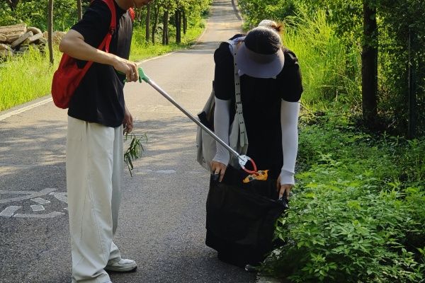 经过前三日对余孔湾村容村貌的系统摸排,团队针对前期发现的 "田间地头零星垃圾散落"" 村道两侧杂物堆积 " 等突出问题,制定了精细化整治方案。当日清晨,团队负责人、伟德bv1946官网风景园林 2301 班弓怡宁带领成员携带垃圾袋、铁锹、扫帚等工具,按区域划分责任片区:弓怡宁带领一组重点清理村主干道两侧,将隐藏在草丛中的塑料瓶、农药包装袋等不易降解垃圾逐一捡拾,对缠绕在树枝上的废弃地膜进行细致剥离。团队成员需弯腰在茂密草丛中搜寻塑料瓶、农药包装袋等垃圾,她们擦着额头的汗说:“这些隐藏的垃圾虽然不起眼,但对土壤和植被影响不小,清理时得格外细致,每捡起一片塑料,都觉得离‘让村子更干净’的目标近了一步。”;另一组由伟德bv1946官网风景园林 2301 班耿思雨牵头,集中处理村口闲置地块的杂物堆,通过分类搬运将废旧砖瓦、枯枝干草与生活垃圾分开堆放,为后续资源化利用或规范处置做好准备。