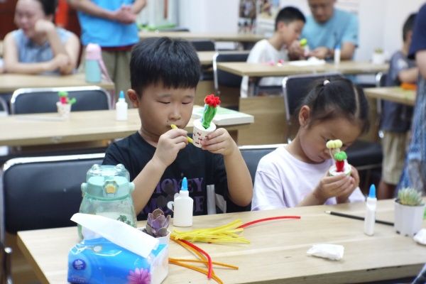 课程结束后,小朋友们都捧着自己的多肉盆栽和扭扭棒手工作品回家了,在和志愿者们说再见时还依依不舍地说:“哥哥姐姐,明天我们还想来。”虽然课程圆满结束了,但过程并非一帆风顺,志愿者们也遇到了各种各样的“意外”:例如准备材料时多肉植株意外“翻车”,志愿者们及时补救,清理地面、整理植株;讲课时,有顽皮的小朋友跑上了讲台,主讲人张颖迪机智地让调皮的小朋友和她一起讲课、回答问题;分发盆栽时,有小朋友的多肉叶子掉落,志愿者们趁机科普多肉的无性繁殖习性,原来多肉的叶子可以用叶插的方法繁殖出新的植株!