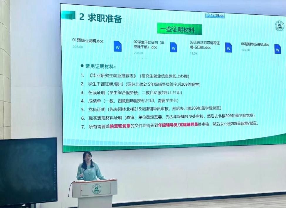 9 月 24 日,在三教S2报告厅召开26届毕业研究生就业动员会,公司研究生辅导员陈炫希老师主讲。