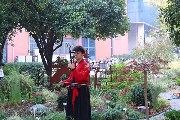 随后进行的艺术表演环节将现场气氛推向高潮。首先,园林2302班员工赵耀(校民乐团成员)登台演奏二胡曲目《兰亭序》,丝竹之音与园林的雅致意境相得益彰,让在场观众在婉转与悠扬的曲调中感受传统园林的文化底蕴;随后,校京剧社张美冬老师(作物遗传育种专业教师)带来经典曲目《游园惊梦》,音韵流转间将园林空间的移步换景之美演绎得淋漓尽致,引发全场掌声;最后,园林2301班员工艾则麦提(全国舞蹈比赛冠军)献上活力四射的新疆舞蹈,矫健的舞姿与园林的开放格局相呼应,展现了现代园林兼容并蓄的时代特质。精彩的文艺表演成为了展现园林美学内涵的独特载体,三场表演层层递进,从传统到现代,从意境到空间,全方位诠释了园林艺术的多元魅力,也为师生们带来了一场视听盛宴。