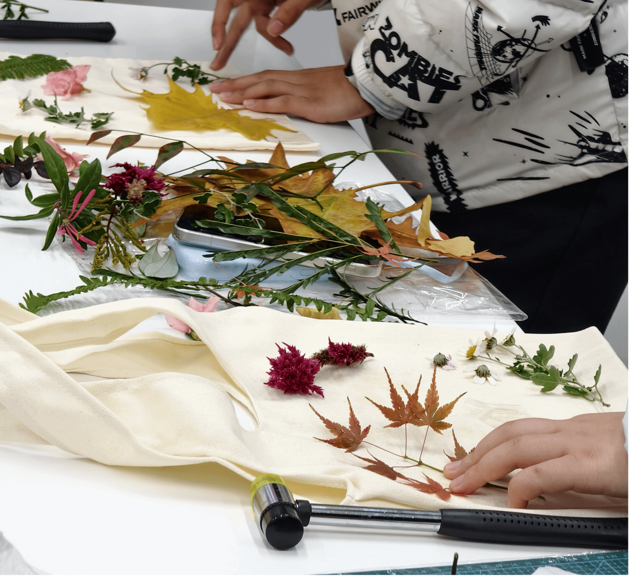 植物拓染环节现场氛围热烈