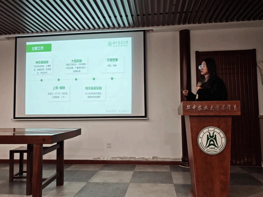 活动在轻松融洽的交流中拉开序幕。在国奖经验分享环节,茶学系2023级硕士研究生张婷和2024级硕士研究生祝文睿作为主讲嘉宾,围绕茶学科研方法、学术心态与成长规划展开了真诚而深入的分享。