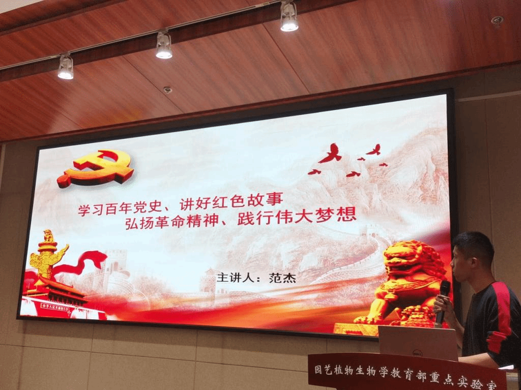 活动伊始,由林学研究生第一党支部的党员范杰作为主讲人作了题为“学习百年党史、讲好红色故事,弘扬革命精神、践行伟大梦想”的党史知识解读。他从以下四个方面进行了讲解:党史学习意义及发展脉络、党史中的红色故事、伟大的革命精神以及践行伟大梦想。在讲解的过程中,范杰先从学习党史的重要意义讲起,带着同学们一起厘清党史的发展脉络;然后重点讲述了4个党史中的红色故事,从具体的事件中体悟伟大的革命精神和作为一名共产党员应具备的品格;最后指出我们应当结合自己所学的专业践行伟大梦想。范杰提到,中国共产党的辉煌历史本身就是一部最好的教科书,在党的百年奋斗史中,无数的先辈们用他们的英雄事迹给我们留下了宝贵的精神财富,我们要学习他们身上无私奉献、艰苦奋斗的优秀品质。作为园林人,我们还要结合自己所学,躬身力行,积极为乡村振兴多做贡献,保护好祖国的绿水青山。