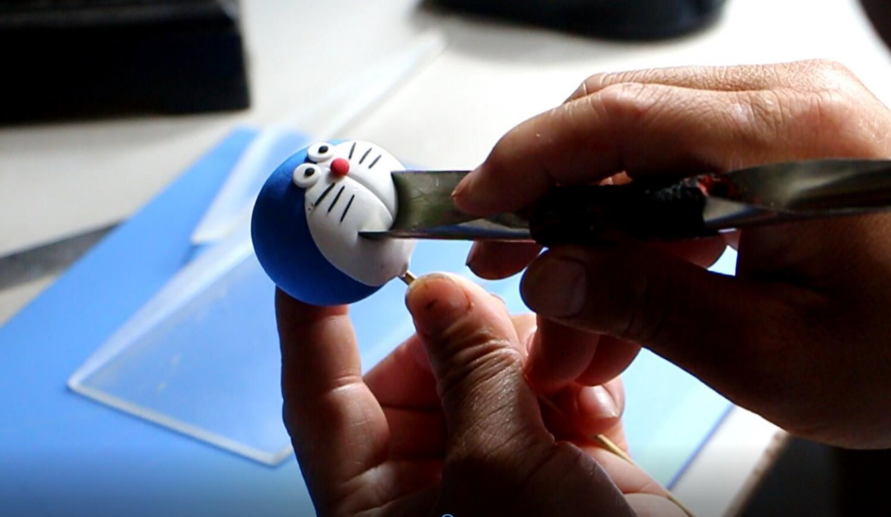 采访的最后,王虎老师拿出自己的工具包,将自创的工具和自配的面泥拿出来,仅借助两块板子,搓、捻、揉、团……不到两分钟,三只活灵活现地面塑卡通人物信手拈来,整个过程行云流水。但是,这短短的两分钟背后是十年的摸索和练习。王虎把面塑视为艺术,而不仅仅是谋生技能,希望能让更多人感受面塑的魅力。