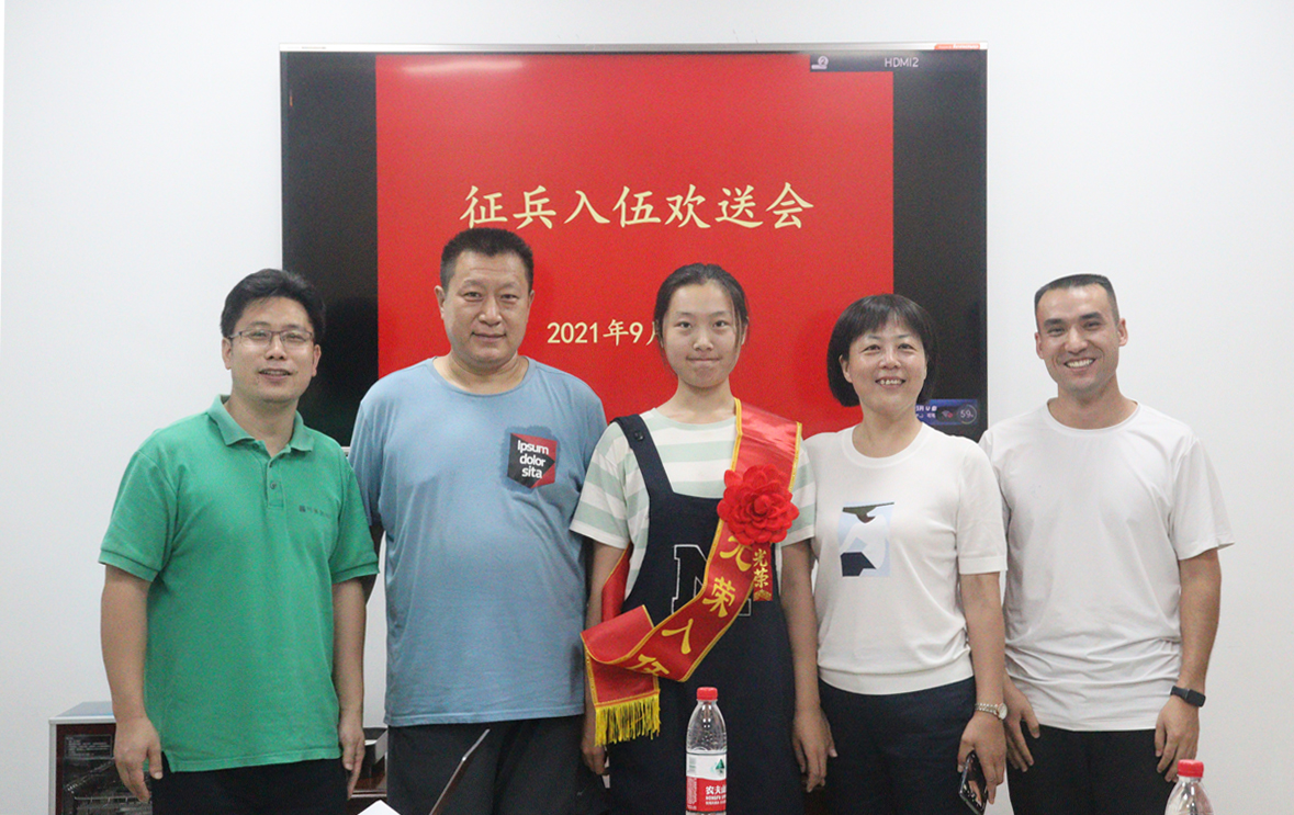 9月16日下午,公司于园林北楼215会议室举行秋季征兵入伍欢送会。入伍的园艺19级本科生温宇鑫、公司党委副书记蔡江、19级辅导员克木、退伍同学代表简雪燕、温宇鑫的父母及在校的好友参加了本次活动。