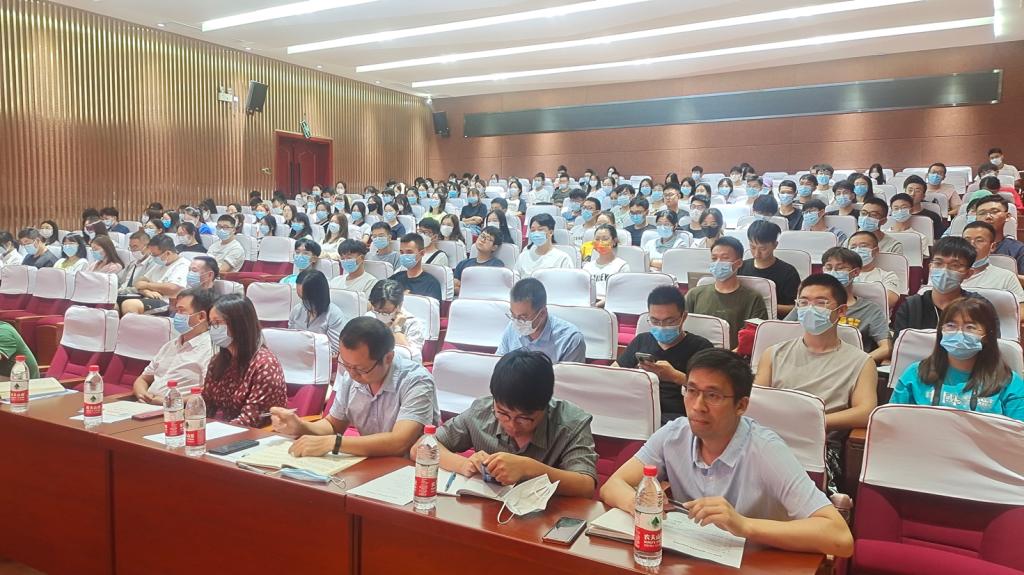 在校研究生代表朱凯杰同学向新生介绍了研究生科研与生活,朱凯杰以“激发科研兴趣,享受科研过程”为主题讲述了本科生到研究生生活的转变以及做好科研的一些建议,他讲到,研究生需要个人的自觉而不是导师的督促,做实验的同时也要注重学术交流。