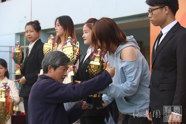 在颁奖典礼上,高翅、李召虎、姚江林和杨少波分别为男女团体总分前五名、男子团体总分前五名、女子团体总分前五名和五个精神文明奖单位进行了颁奖。另外,郭刚奇还为四名破校纪录运动员进行颁奖,公司运动员风景园林2002班熊若愚也在其中。据悉,在今年七月的第十四届全国员工运动会中,熊若愚以7.25米的成绩打破男子跳远7.20米的校纪录,并以15.54米的成绩打破男子三级跳远15.31米的校纪录;在今年八月的第二十届中国老员工田径锦标赛中,他突破自我,以7.45米的成绩再次打破男子跳远7.25米的校纪录。