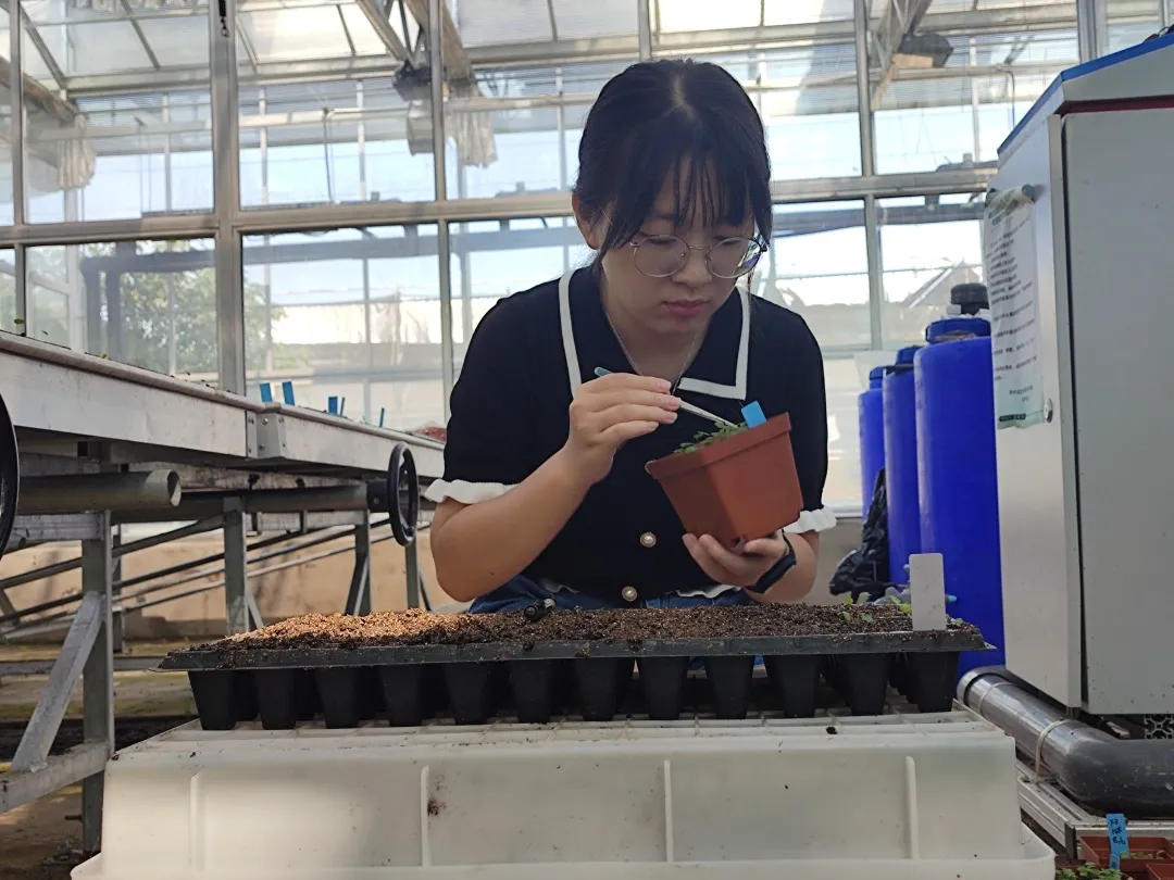 在本科时主修园林设计方向的她,面对新的专业,新的知识,难免会有一些力不从心,但刘思佳同学秉持着刻苦钻研的精神,上课认真,从不迟到旷课。最终她的学业成绩(全部课平均成绩)在班级内部排名在前35%,班级排名第四。当谈论到专业不同而如何克服学习上的困难时,她表示:“学起来肯定是有点困难,但是学起来还挺有意思的,其实有的和生活还蛮贴切的,比如我上的栽培课。解决办法就是勤学多问,身边有很多优秀的同学,多向他们学习发问。”刘思佳同学还谈及到初入实验室时,对于所有的事物都是陌生的,她一度感到力不从心,但多亏了师姐热心的帮助,教她各种实验仪器的使用方法以及注意事项,使她快速地成长了起来。“青出于蓝而胜于蓝”,今年作为研二师姐的她已经能够独立并带领本科生做实验,遇到课题中的问题和难点会与导师以及同学们积极交流,查阅文献,时刻保证着实验的顺利进行。