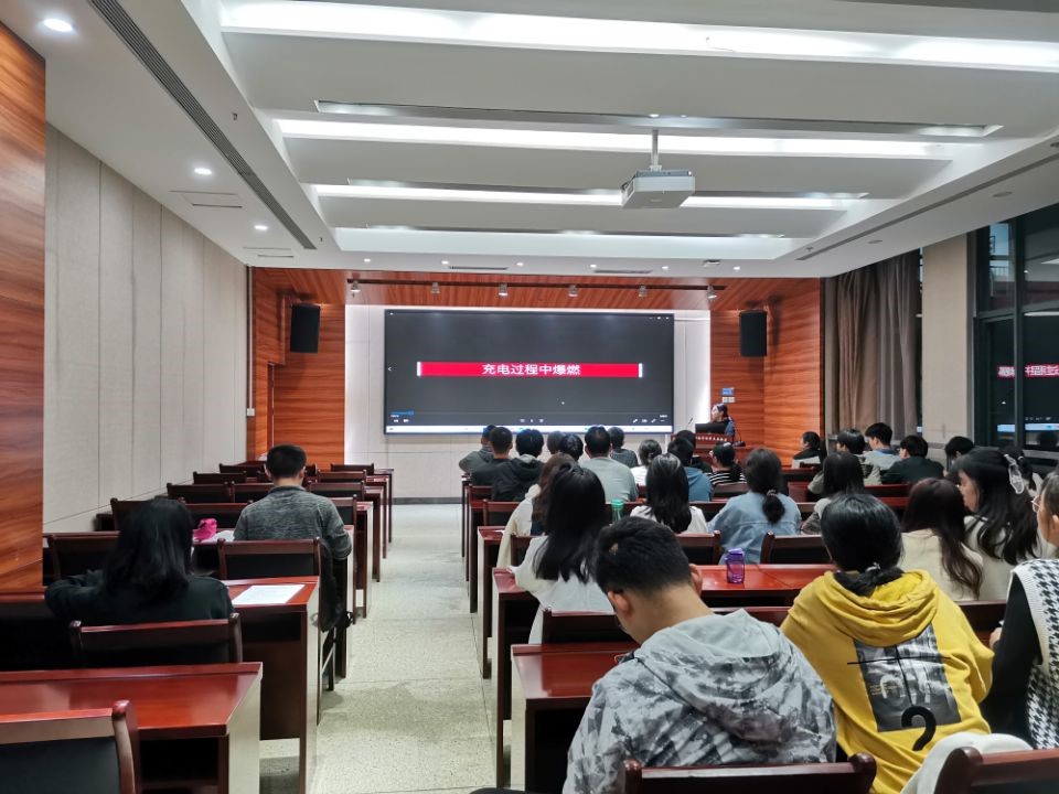 针对电动自行车还没有上牌照的同学,班长讲解了电动自行车上牌流程,明确上牌照所需材料、电动自行车是否达标查询途径、办理牌照地点等。最后,班长播放了“电动车起火”视频,向同学们强调不要室内充电,不使用老化、劣质电池,不私自改装电池。