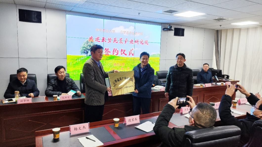 为充分发挥公司科教和人才优势,着力推进农科教紧密结合、产学研有效对接,积极探索地校联动合作发展长效机制,助力疫后重振和蔬菜强县建设,共同推进乡村振兴战略实施,1月18日,bv伟德国际1946和云梦县农业农村局联合共建“云梦蔬菜产业研究院”授牌仪式在云梦县农业农村局305会议室举行。