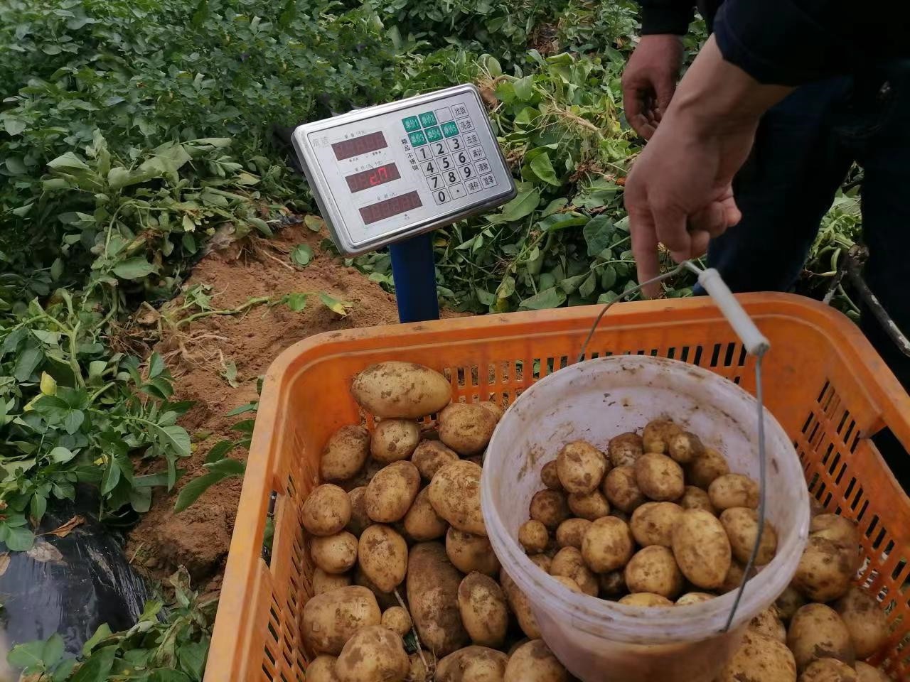 省农业农村厅副厅长肖长惜和bv伟德国际1946教授谢从华等四名专家组成测产团队,随机抽取3段10米长地块,对在田马铃薯产量进行了测产。