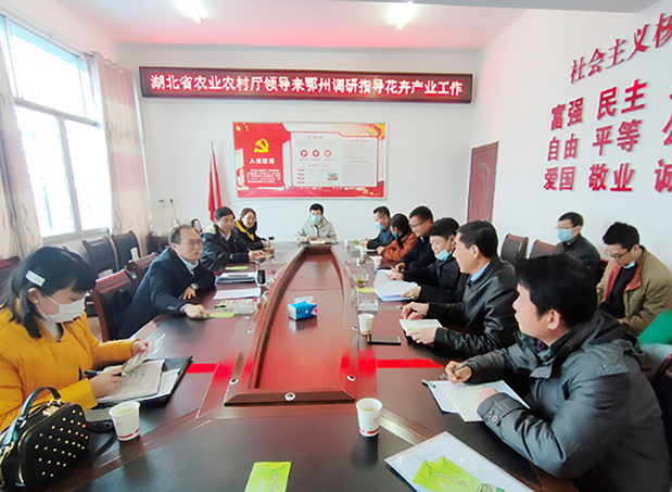 3月8日,应湖北省农业农村厅之邀,公司园林系产祝龙教授赴鄂州开展花卉产业发展现状调研。鄂州市农业农村局局长吴斌、二级调研员元生主任和当地花卉企业负责人接待了产祝龙一行。