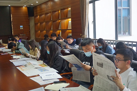 在读报环节,同学们纷纷从自己支部的报箱中拿取报纸,从报纸中了解当今的国际政治形势、社会动态及党中央的指导方针等。