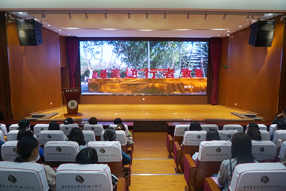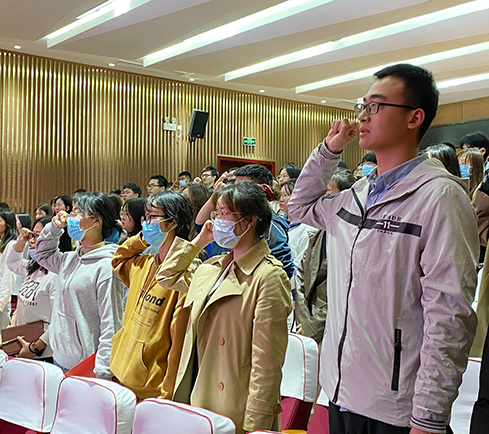 在园林北楼的228报告厅,师生党员代表、入党积极分子代表,集中观看《榜样5》专题节目,重温入党誓词。来自园林1704班的本科生马丹阳说道:“我们要学习榜样精神,汲取榜样力量,积极承担社会责任,在平凡中实现自身的价值,为公司和公司的发展贡献自己的力量。”
