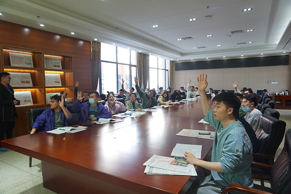 (孔秋生向员工党员骨干分享援疆经历 易梦妮供图)