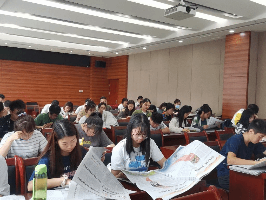 读报环节,同学们认真阅读了发放的报纸,了解时政新闻,学习相关知识。