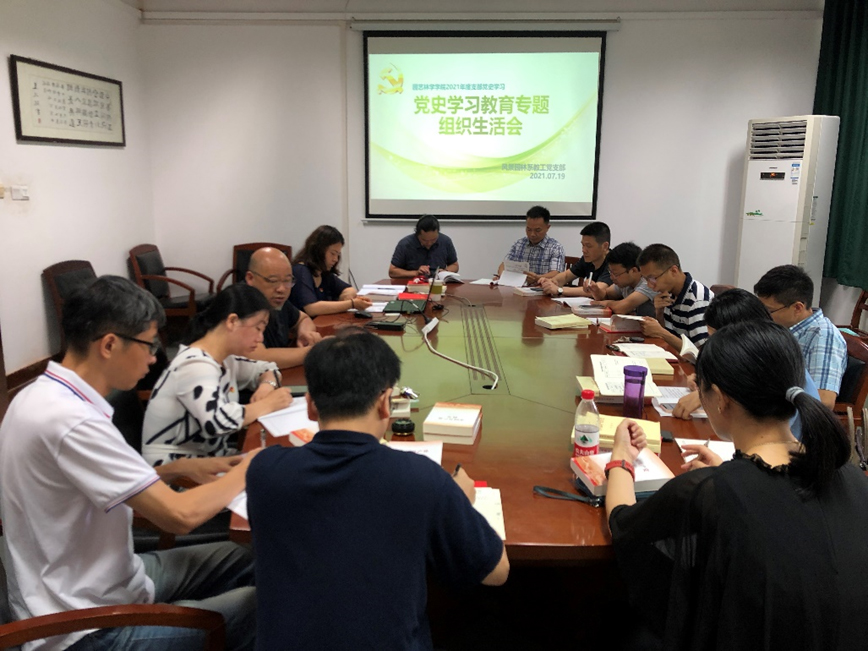 7月19日上午,风景园林系教工党支部在景园楼212召开党史学习教育专题组织生活会,会议由支部书记张斌主持。