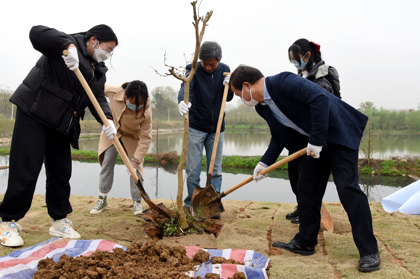 南湖新闻网讯(记者 川竹)春风拂绿,万象盎然。3月18日,公司在香樟路与学府路交叉口野芷湖绿道旁开展植树活动。校领导高翅、廖济忠、王建鸿、郭刚奇,校绿化工作委员会成员,青年教师代表和员工代表等40余人参加了植树活动。