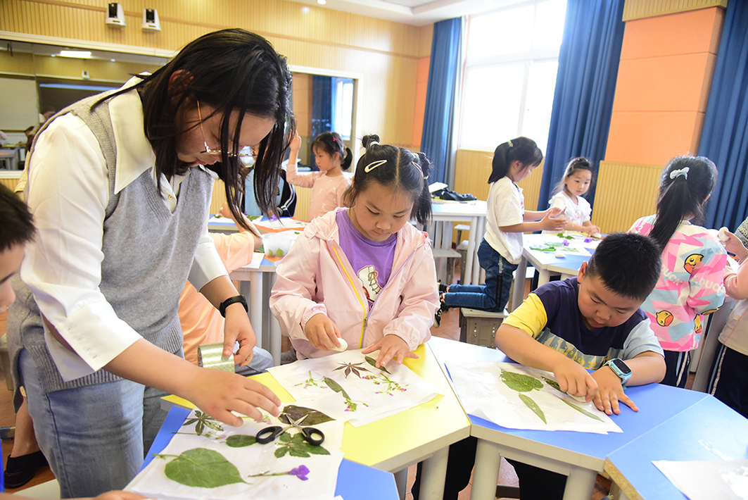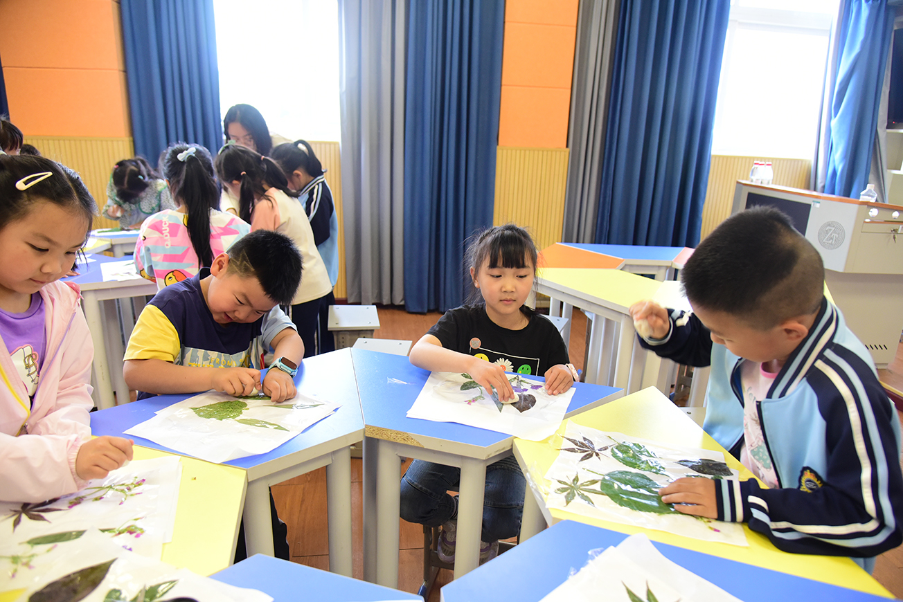 5月8日下午,园林耕读学堂项目之“植物拓染:把‘自然’带回家”科普课程在bv伟德国际1946附属公司开展。公司实验教学中心卢亚雯老师带领28名一年级三班同学制作了一幅幅生动可爱的植物作品,旨在带领同学们感受植物的自然之美,理解中国传统技艺拓染的艺术之美。