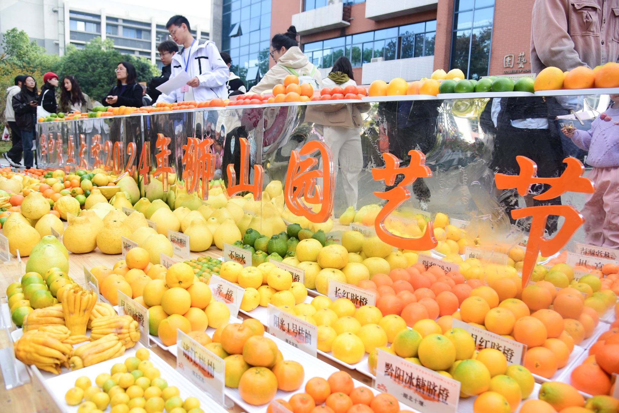 11月23日,bv伟德国际1946举办2024狮山园艺节,现场展出了来自全国柑橘主产区的近150种柑橘品种,色彩斑斓,果香浓郁,吸引众多师生、市民驻足观赏。