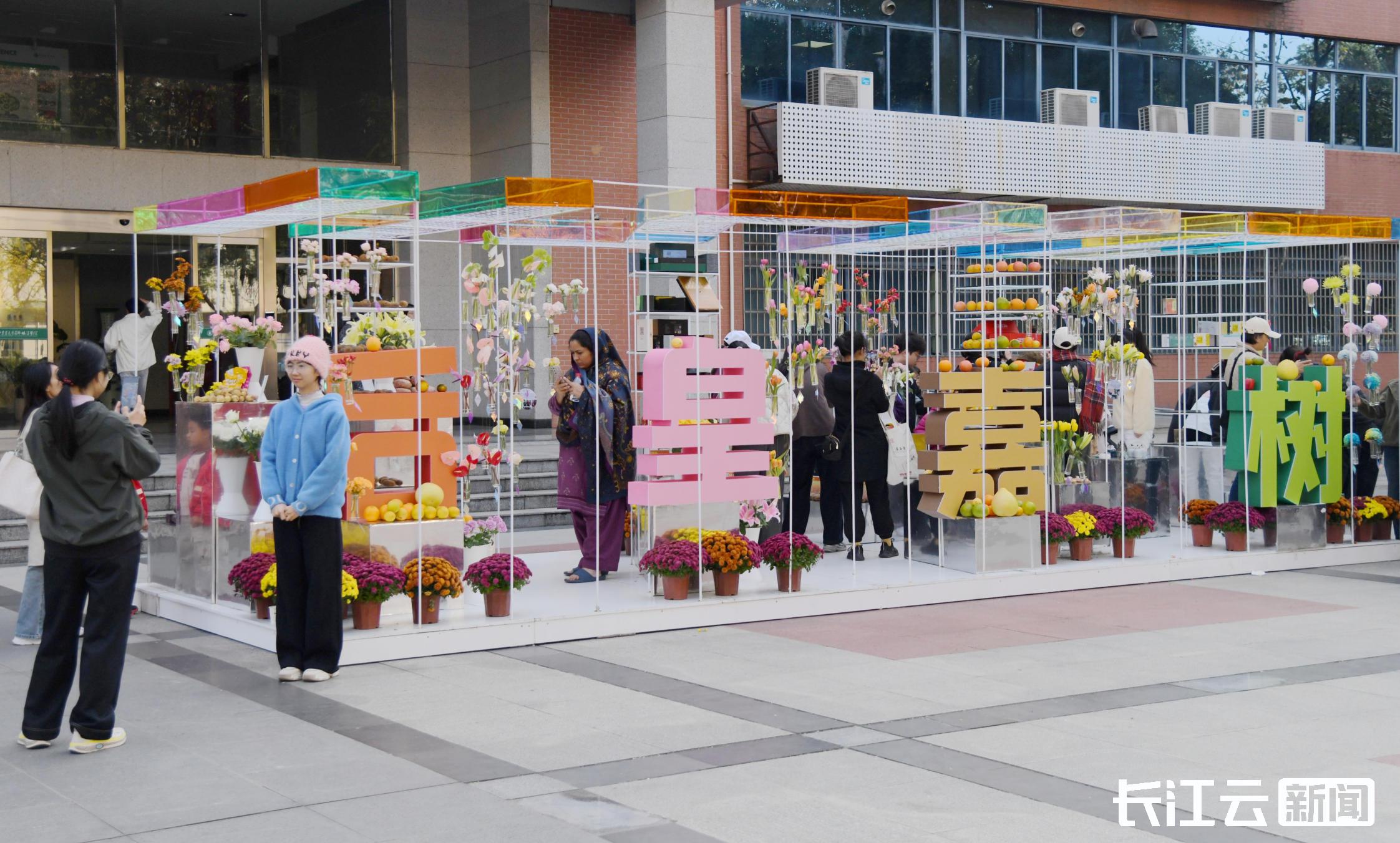 现场,艺术装置为园艺节增添了美学色彩。园林北楼前,“生命格栅”艺术造型将柑橘、马铃薯等作物与公司自育花卉巧妙搭配,形成充满科技意蕴的微缩景观。狮子山广场上,以《楚辞》为灵感的花艺装置《后皇嘉树》,以散尾葵、向日葵等植物复刻“后皇嘉树,橘徕服兮”的意境,成为观众拍照打卡的热点。